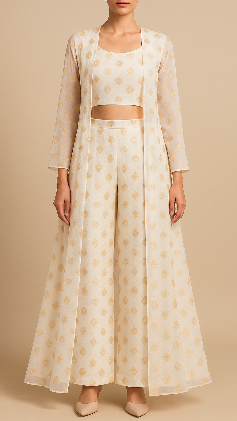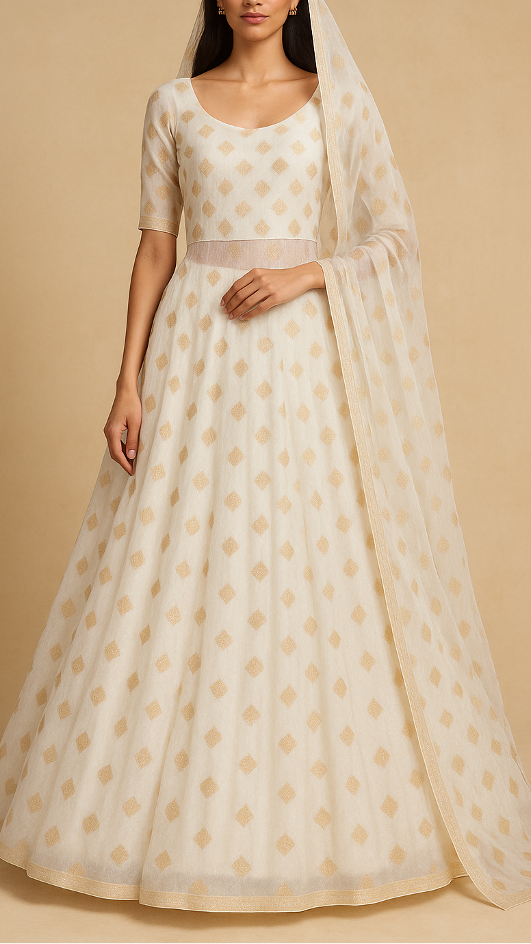 | Fabric Name | White Georgette Fabric With All Over Zari Handloom |