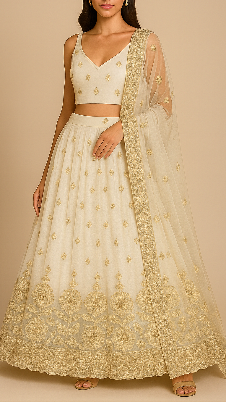 Ideal for sarees, dupattas, lehengas, and gowns, this fabric enhances both traditional and contemporary styles. The cutwork border adds a statement edge to drapes and hemlines, making it a perfect choice for weddings, receptions, and special occasion wear.