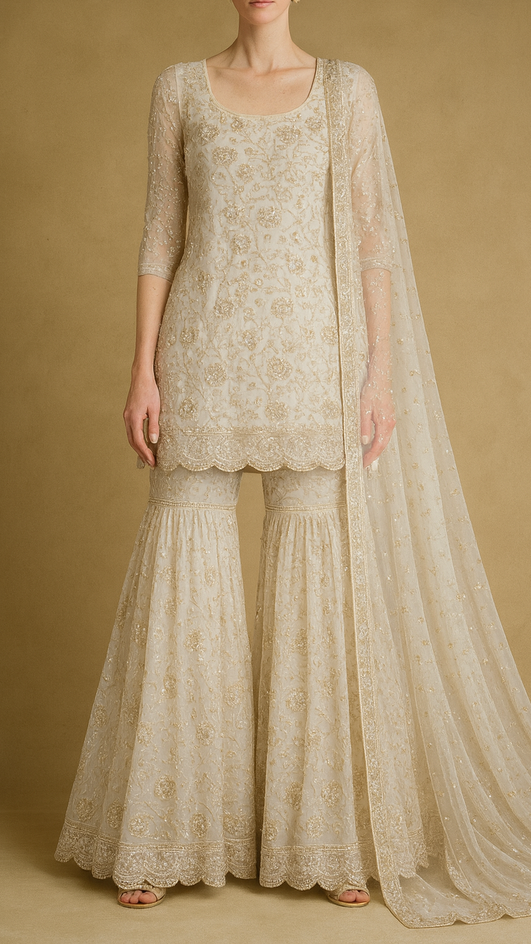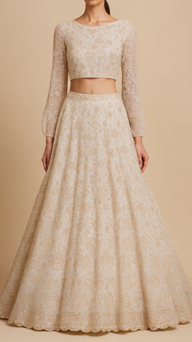 Perfect for creating sarees, dupattas, and lehengas, as well as anarkalis, festive gowns, and statement kurtas. The exquisite mix of sequins, katdana, and pearl detailing makes it ideal for weddings, festive occasions, and evening events, offering a timeless and regal aesthetic.