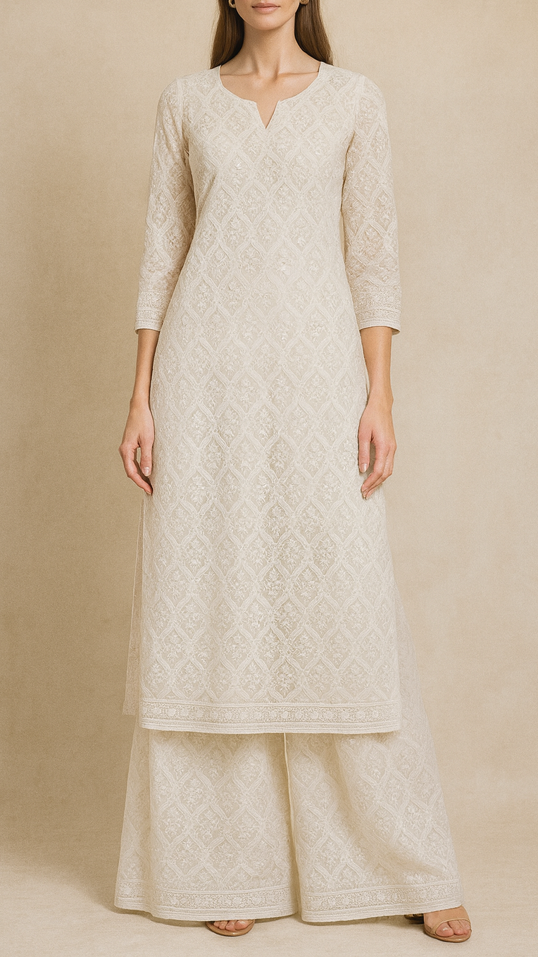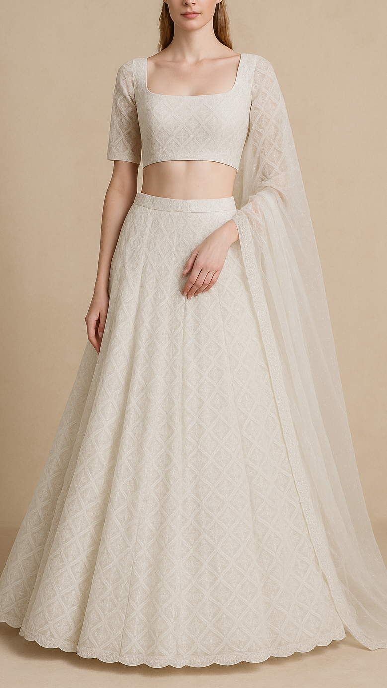Ideal for designing sarees, lehengas, and anarkalis, along with dupattas, kurtis, and festive gowns. The understated shimmer and delicate embroidery make it perfect for festive wear, engagement outfits, and elegant day functions, offering a subtle yet luxurious charm.