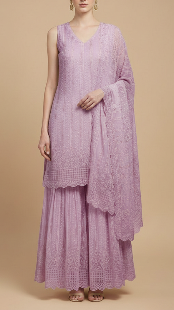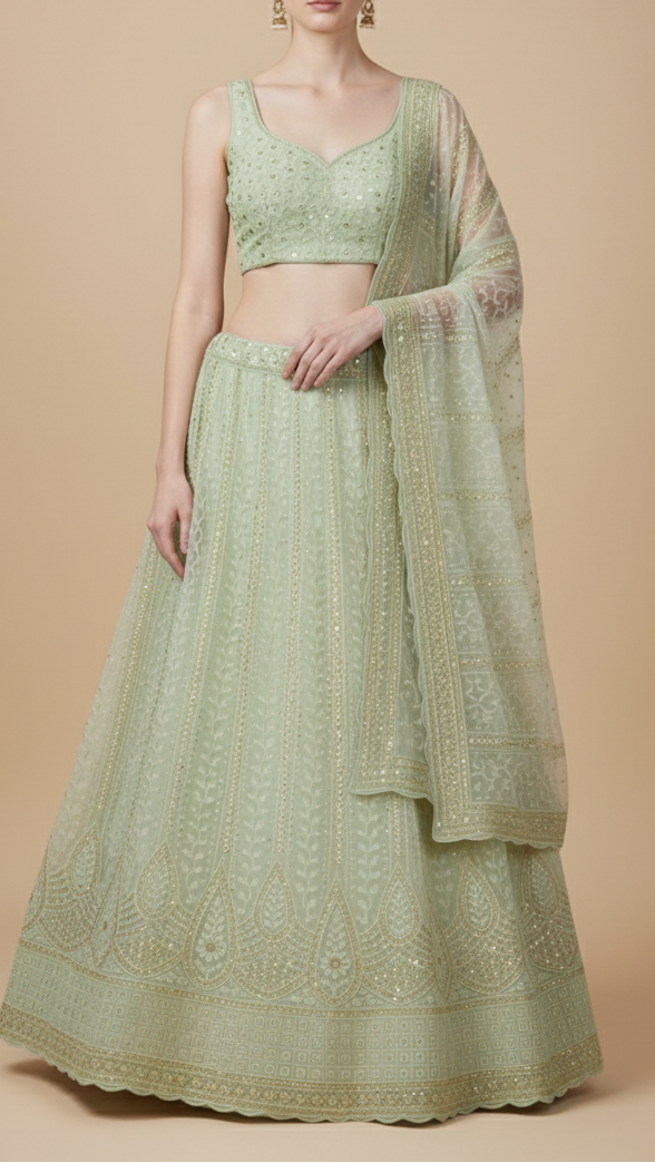 Perfect for designing sarees, dupattas, and lehengas, along with anarkalis, festive gowns, and statement kurtis. The intricate sequins embroidery and scalloped border make it ideal for wedding functions, festive celebrations, and evening events, offering a graceful and luxurious appeal.