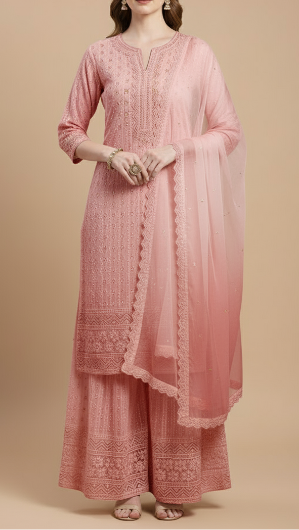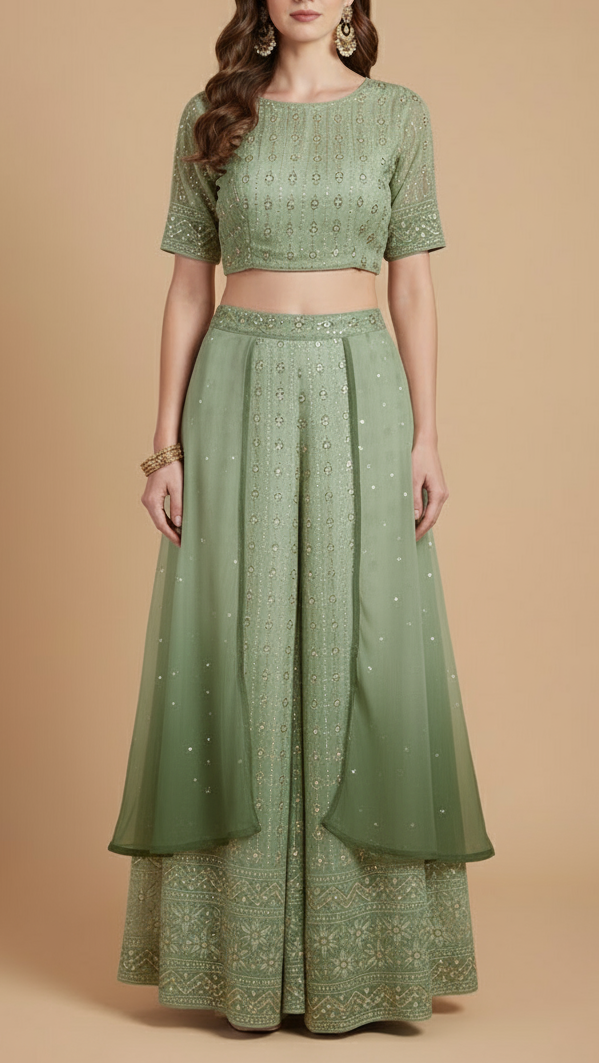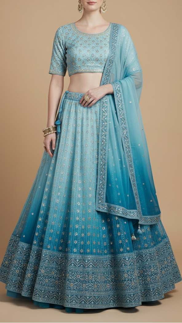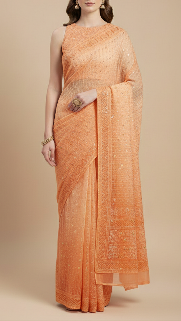 Perfect for designing sarees, dupattas, and lehengas, along with anarkalis, festive gowns, and statement kurtis. The intricate sequins embroidery and scalloped border make it ideal for wedding functions, festive celebrations, and evening events, offering a graceful and luxurious appeal.