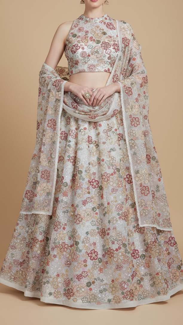 Perfect for designing sarees, lehengas, and anarkalis, as well as dupattas, festive gowns, and stylish kurtis. The intricate bead and sequins embellishments make it ideal for wedding functions, festive occasions, and evening wear, offering a refined, glamorous, and timeless appeal.