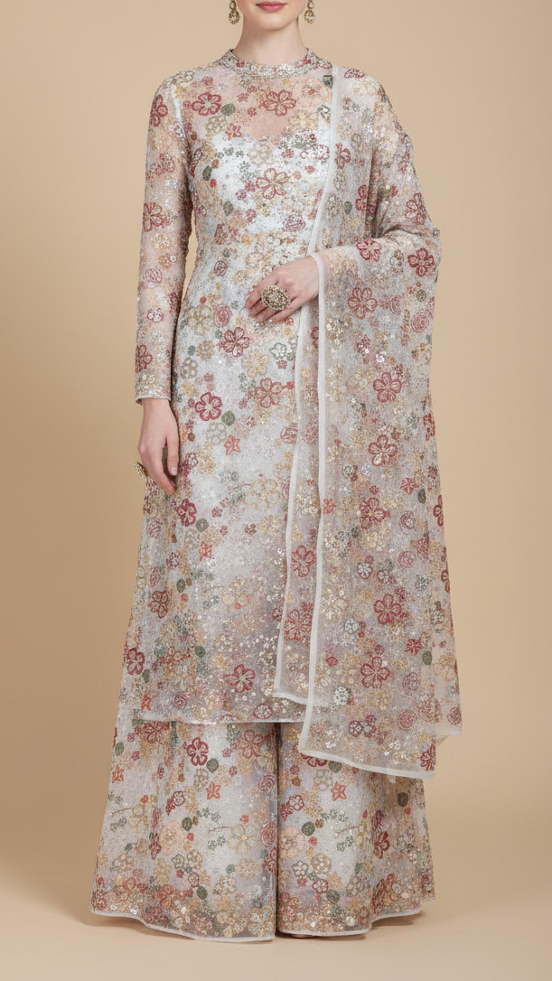 | Fabric Name | White Georgette Fabric with Allover Thread, Sequins and Bead Work |