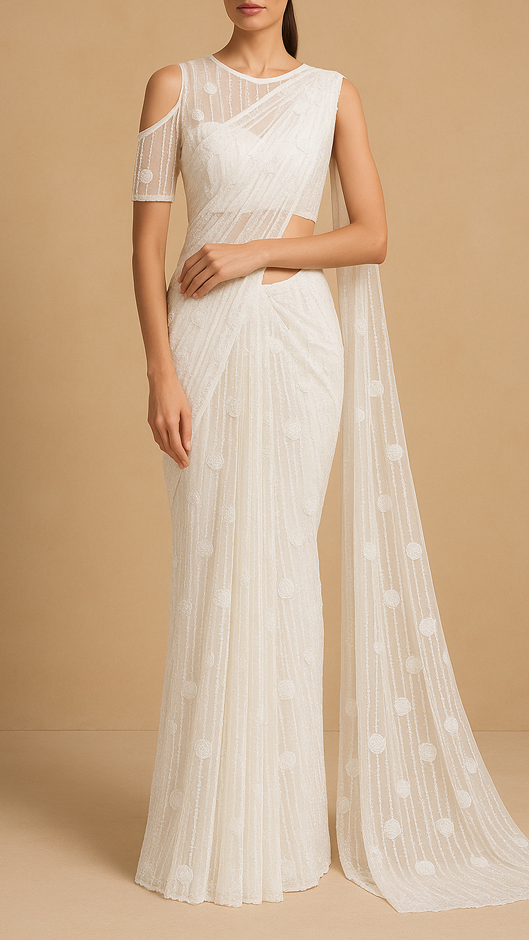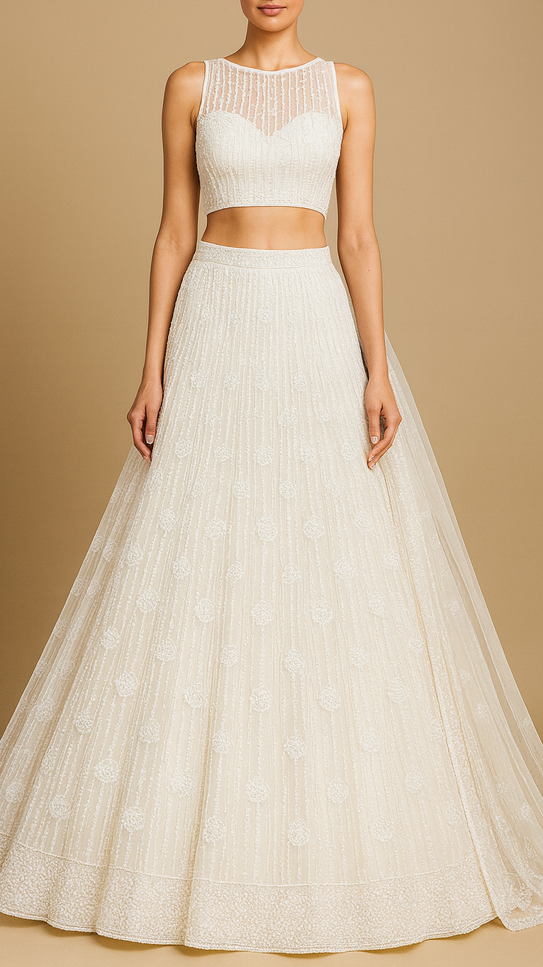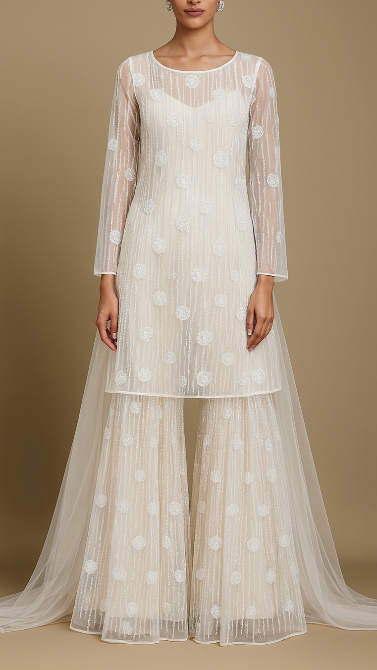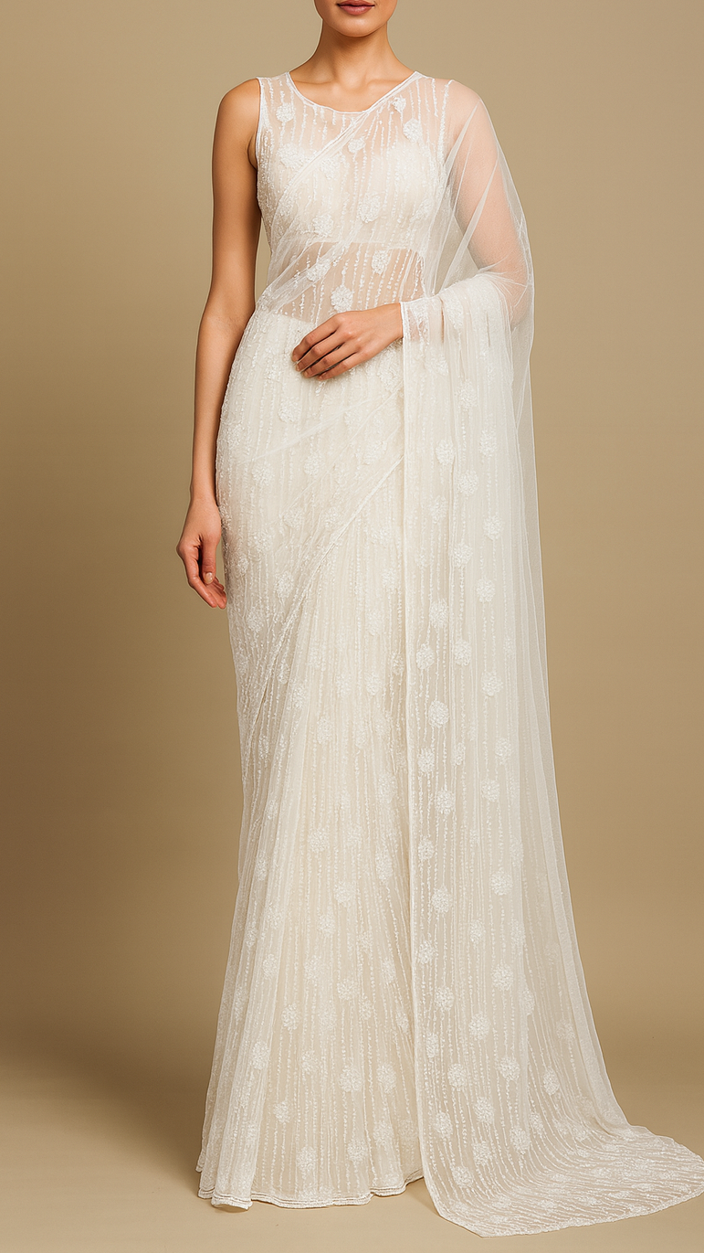 | Fabric Name | White Imported Net Fabric With All Over Sequins And Bead Work |
