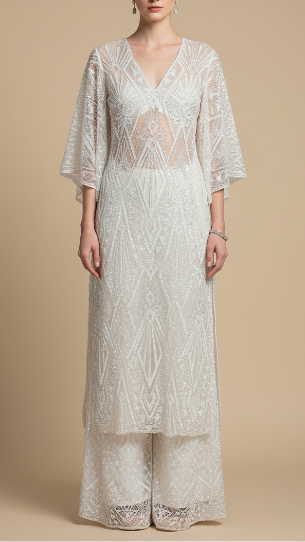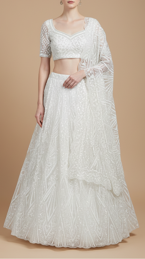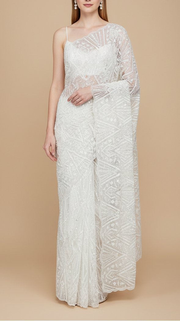 | Fabric Name | White Imported Net Fabric With Allover Sequins, Pearl & Bead Work |