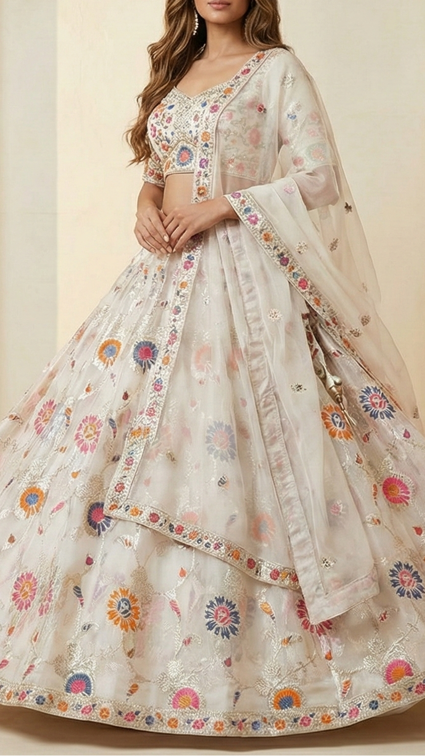 | Fabric Name | White Dyeable Organza Fabric With All Over Thread And Zari Handloom |