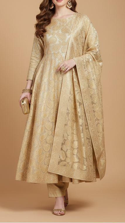 Perfect for sarees, anarkalis, jackets, ethinic jumpsuits, sherwani, etc. The rich look of this fabric is ideal for festive outfits, wedding attire & traditional wear.