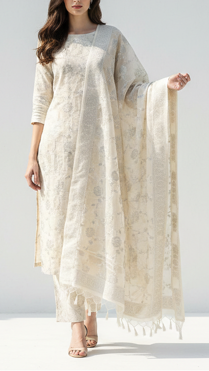 | Fabric Name | White Silk Fabric With All Over Thread Handloom |
