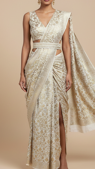 | Fabric Name | White Silk Fabric With Allover Jaal Pattern Of Zari Handloom |