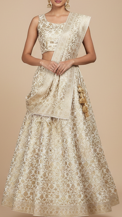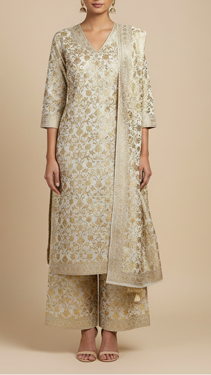 Perfect for sarees, anarkalis, jackets, ethinic jumpsuits, sherwani, etc. The rich look of this fabric is ideal for festive outfits, wedding attire & traditional wear.