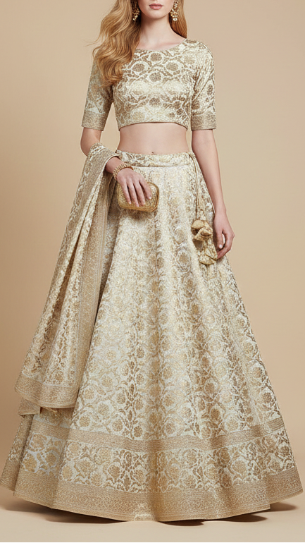 Perfect for sarees, anarkalis, jackets, ethinic jumpsuits, sherwani, etc. The rich look of this fabric is ideal for festive outfits, wedding attire & traditional wear.