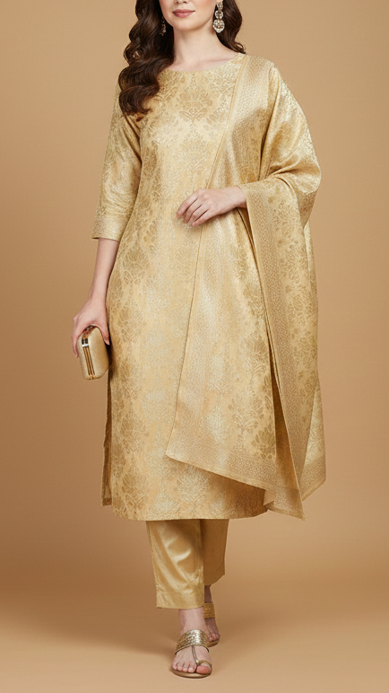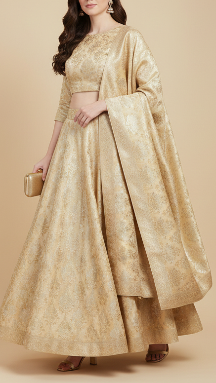 Perfect for sarees, anarkalis, jackets, ethinic jumpsuits, sherwani, etc. The rich look of this fabric is ideal for festive outfits, wedding attire & traditional wear.