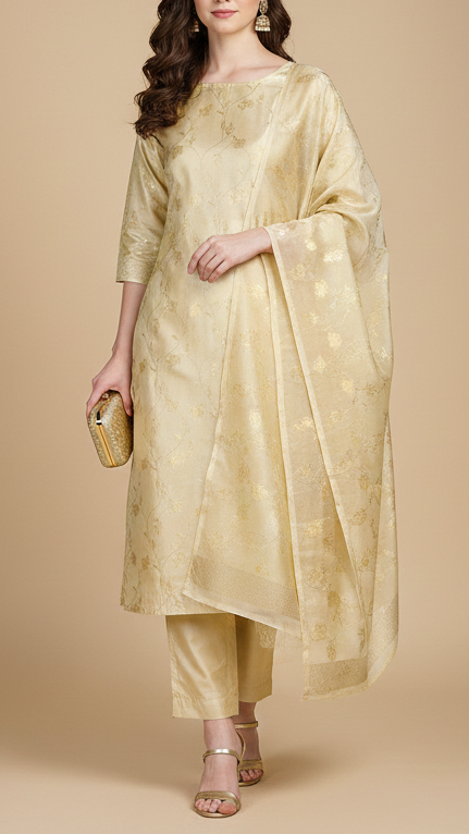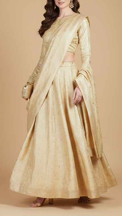 Perfect for sarees, anarkalis, jackets, ethinic jumpsuits, sherwani, etc. The rich look of this fabric is ideal for festive outfits, wedding attire & traditional wear.
