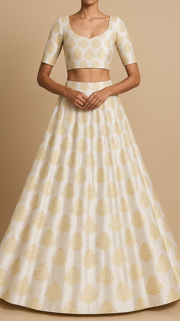 Ideal for sarees, lehengas, blouses, and dupattas, this fabric reflects refined craftsmanship and heritage charm. The all-over zari handloom design makes it perfect for weddings, festive celebrations, and ethnic wear collections.