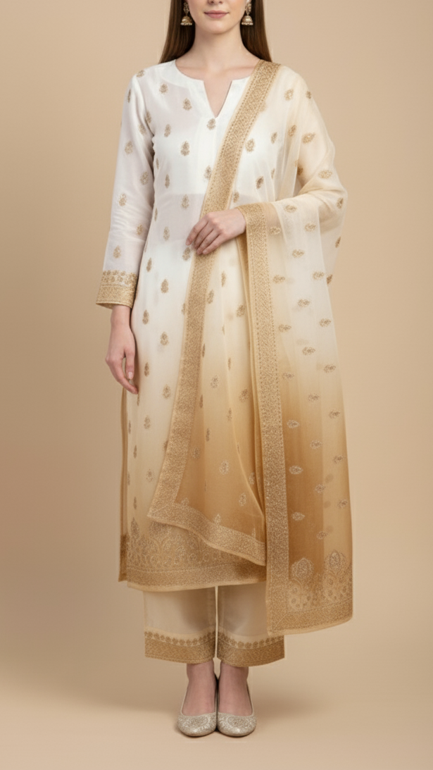 Perfect for creating sarees, lehengas, dupattas, and anarkalis, as well as blouses, festive gowns, and traditional suits. The rich zari weave and subtle sheen make it an excellent choice for weddings, festive celebrations, and formal occasions, offering a refined and regal look.