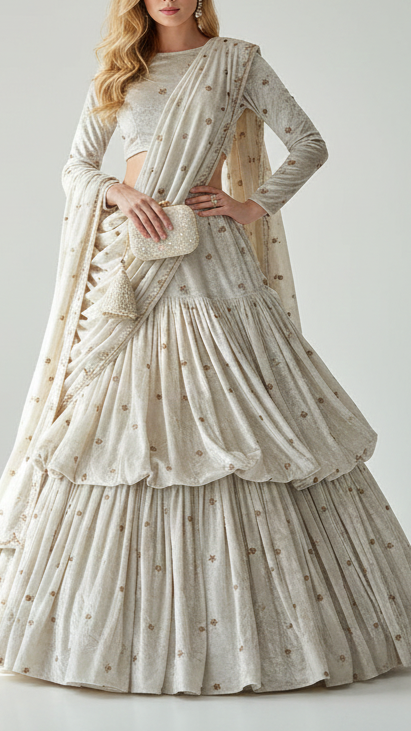 Ideal for lehengas, suits, jackets, and statement panels where richness, warmth, and detailed embellishment are essential for an elegant, premium finish.