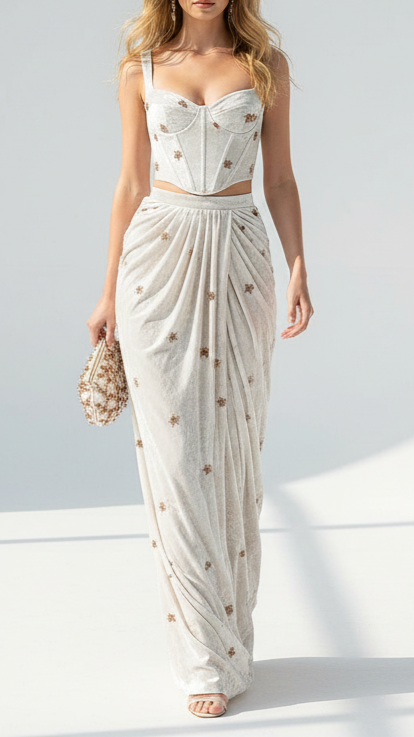 Should you require further assistance, please contact our dedicated customer care team. Provide them with your body dimensions and a sample image of the desired attire. Our experts will ensure you receive precise guidance tailored to your needs, reflecting our commitment to exceptional service and luxury.