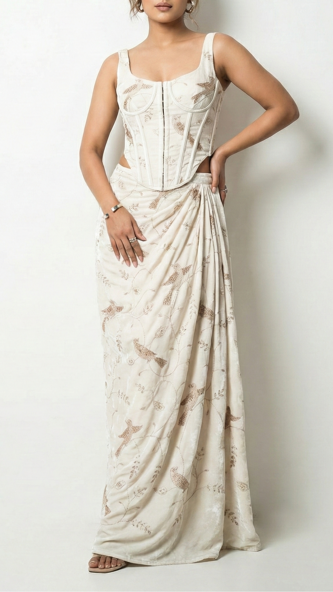 Should you require further assistance, please contact our dedicated customer care team. Provide them with your body dimensions and a sample image of the desired attire. Our experts will ensure you receive precise guidance tailored to your needs, reflecting our commitment to exceptional service and luxury.