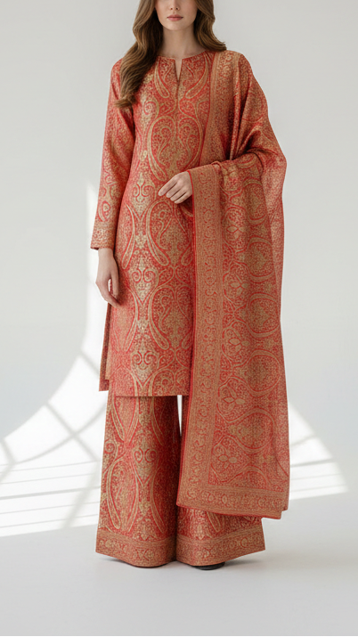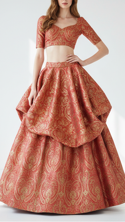 Ideal for lehengas, suits, jackets, and statement panels where richness, warmth, and detailed embellishment are essential for an elegant, premium finish.