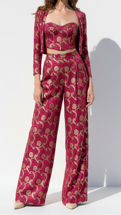 Perfect for lehenga, sarees, anarkalis, jackets, ethinic jumpsuits, sherwani, etc. The rich look of this fabric is ideal for festive outfits, wedding attire & traditional wear.