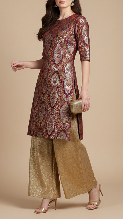 Perfect for sarees, anarkalis, jackets, ethinic jumpsuits, sherwani, etc. The rich look of this fabric is ideal for festive outfits, wedding attire & traditional wear.