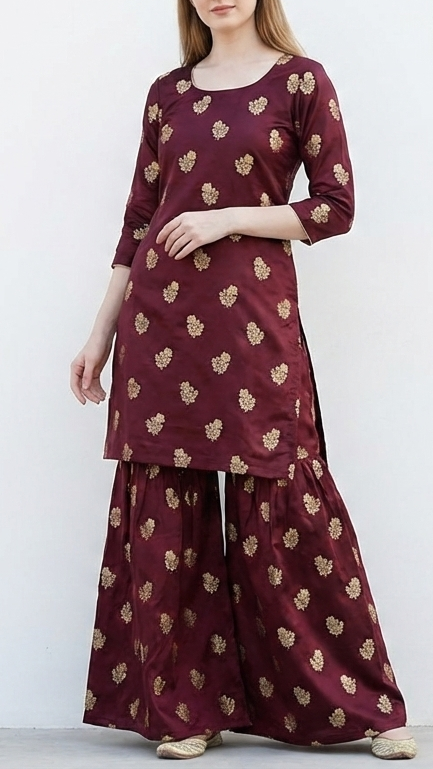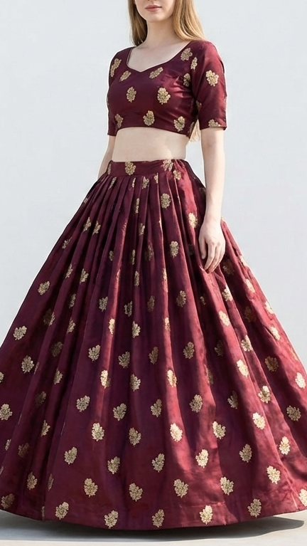 | Fabric Name | Wine Banarasi Silk Fabric With All Over Buti Of Golden Zari Handloom |