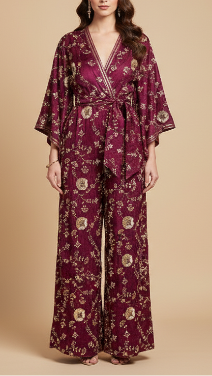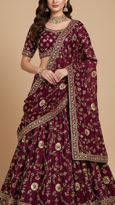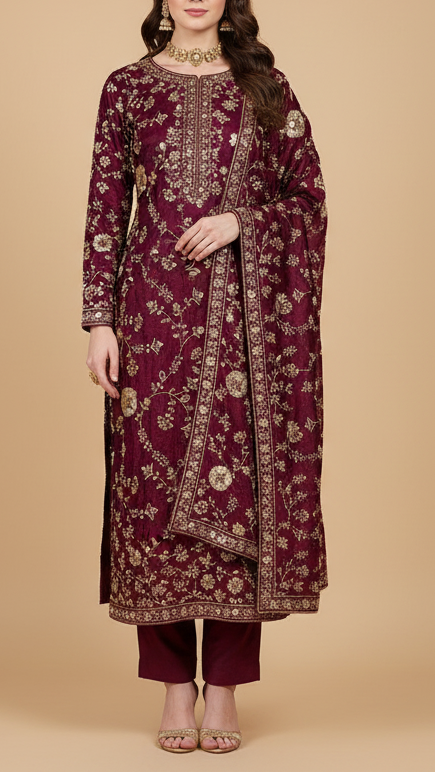 | Fabric Name | Wine Diamond Silk Fabric With All Over Zari, Sequins, Bead And Katdana Work |