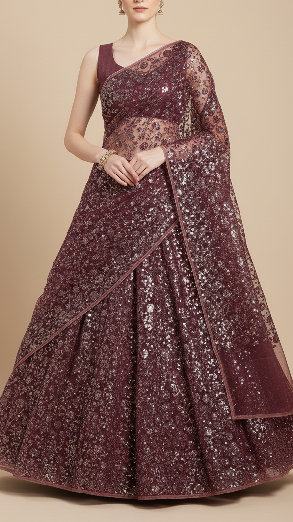 | Fabric Name | Wine Imported Net Fabric with Allover Bead, Sequins and Katdana Work |