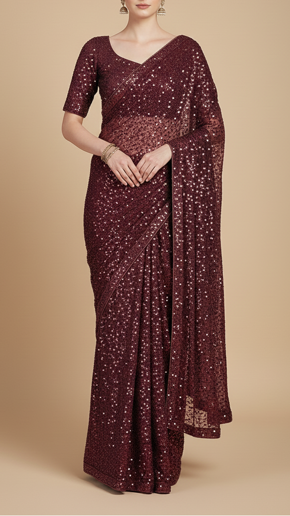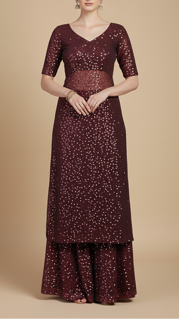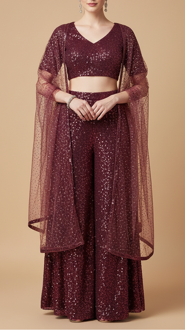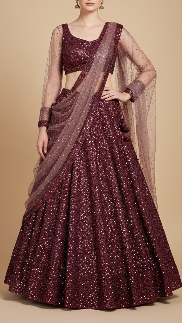 | Fabric Name | Wine Imported Net Fabric with Allover Sequins and Bead Work |