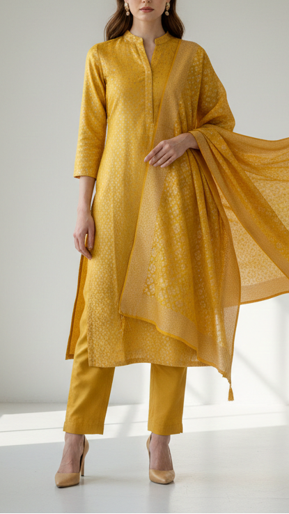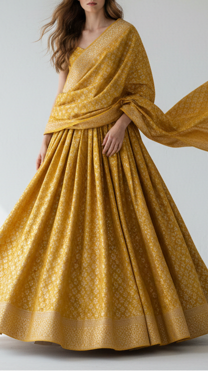 | Fabric Name | Yellow Banarasi Brocade Fabric With All Over Golden Zari Handloom |