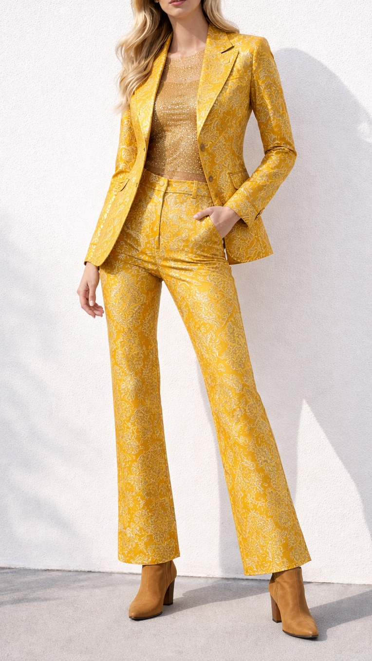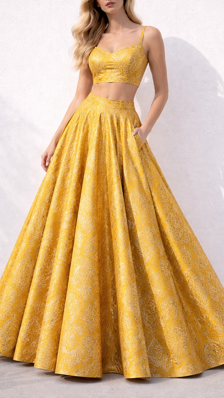 | Fabric Name | Yellow Banarasi Brocade Fabric With All Over Golden Zari Handloom |