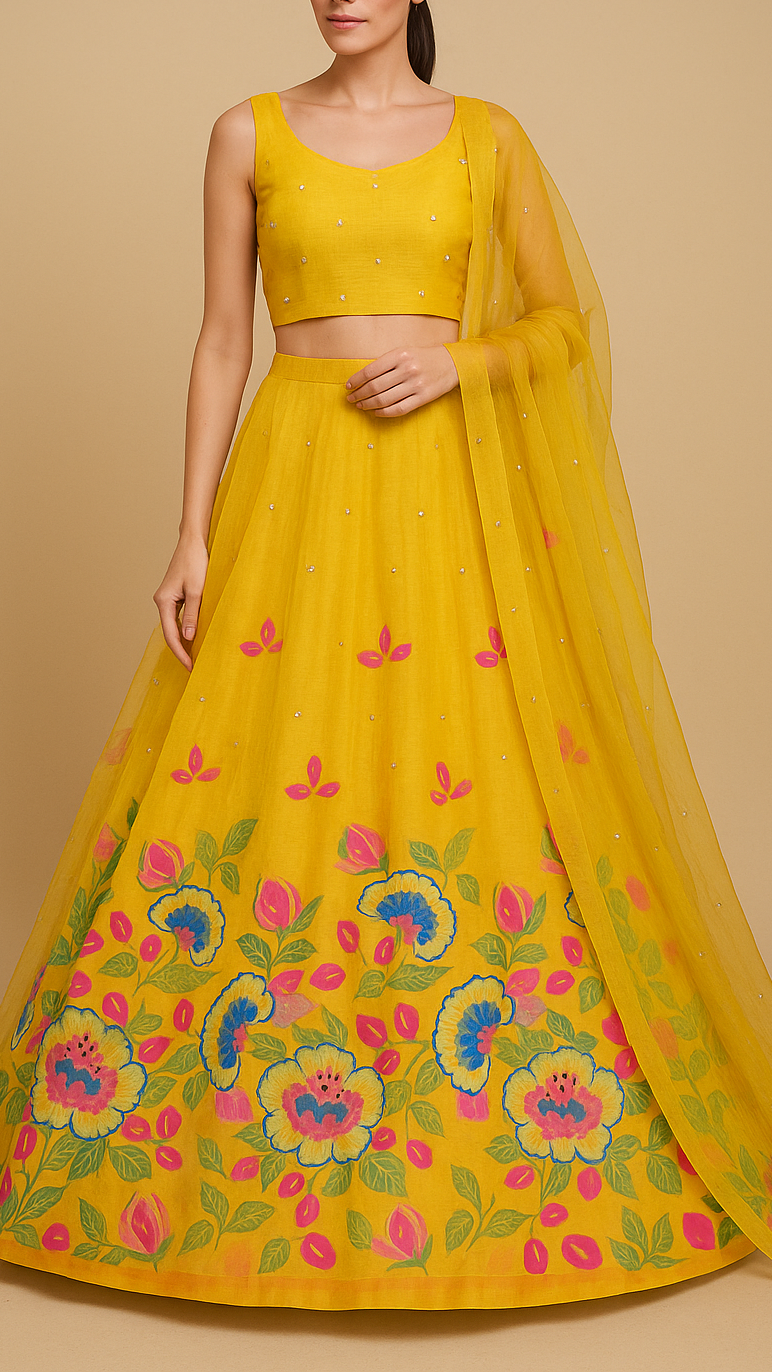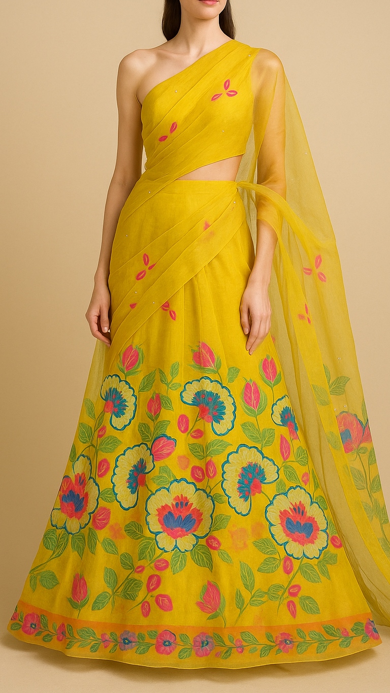 Ideal for designing sarees, dupattas, and lehengas, as well as anarkalis, kurtis, and fusion gowns. The intricate detailing and border finish make it perfect for festive events, wedding functions, and celebratory occasions, offering a vibrant and graceful look.
