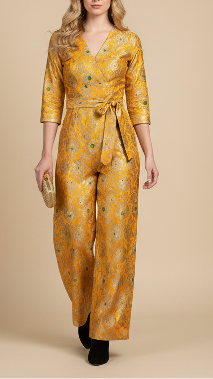 Ideal for sarees, lehengas, blouses, sherwanis, and ethnic jackets, this fabric captures the essence of royal tradition. Its detailed thread and golden zari weaving make it a perfect choice for weddings, receptions, and festive occasions.